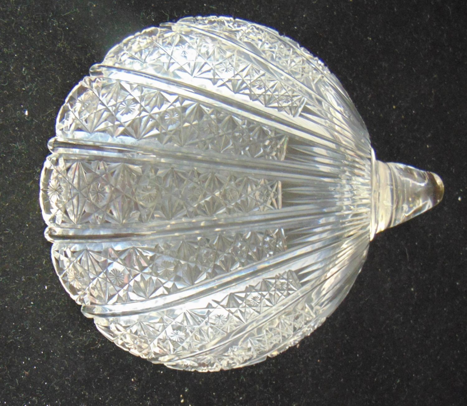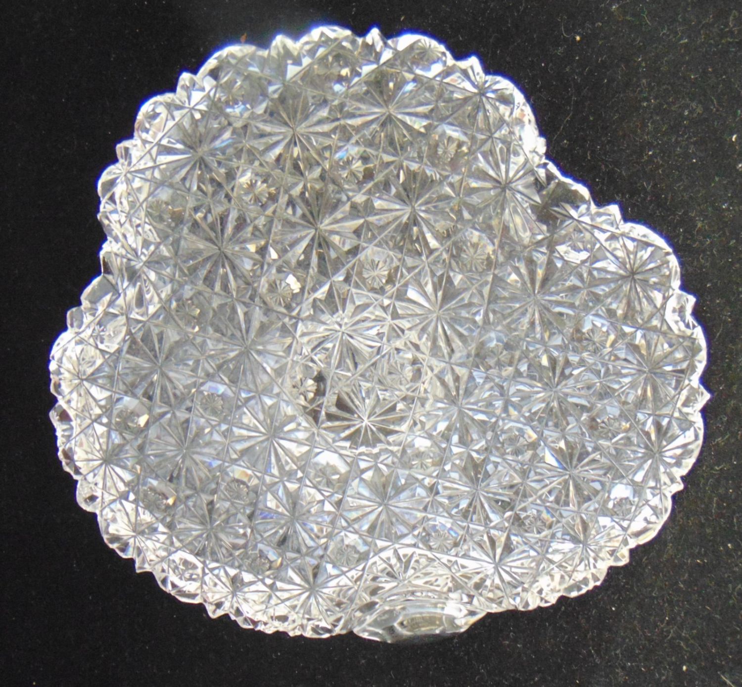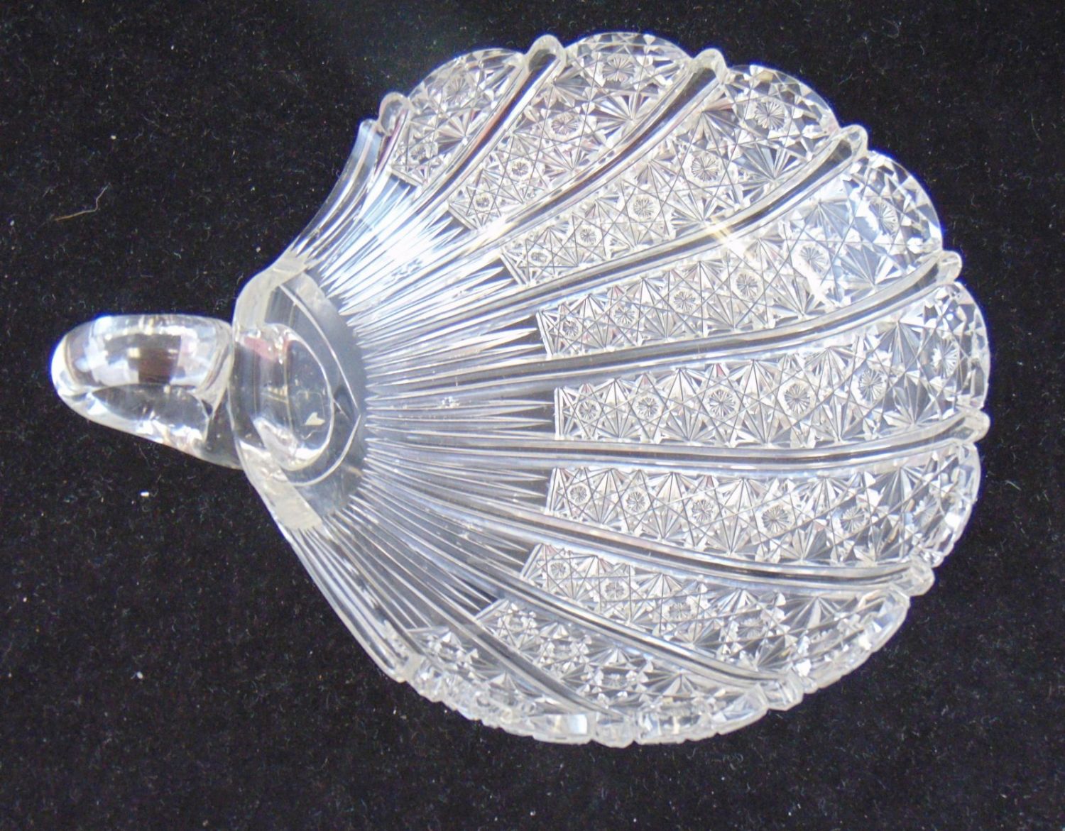 Including a Dorflinger finger candlestick in the Russian pattern, together with a shell formed nappy, 7 1/2" ht. Condition: good, with minor chips to the back of the shell