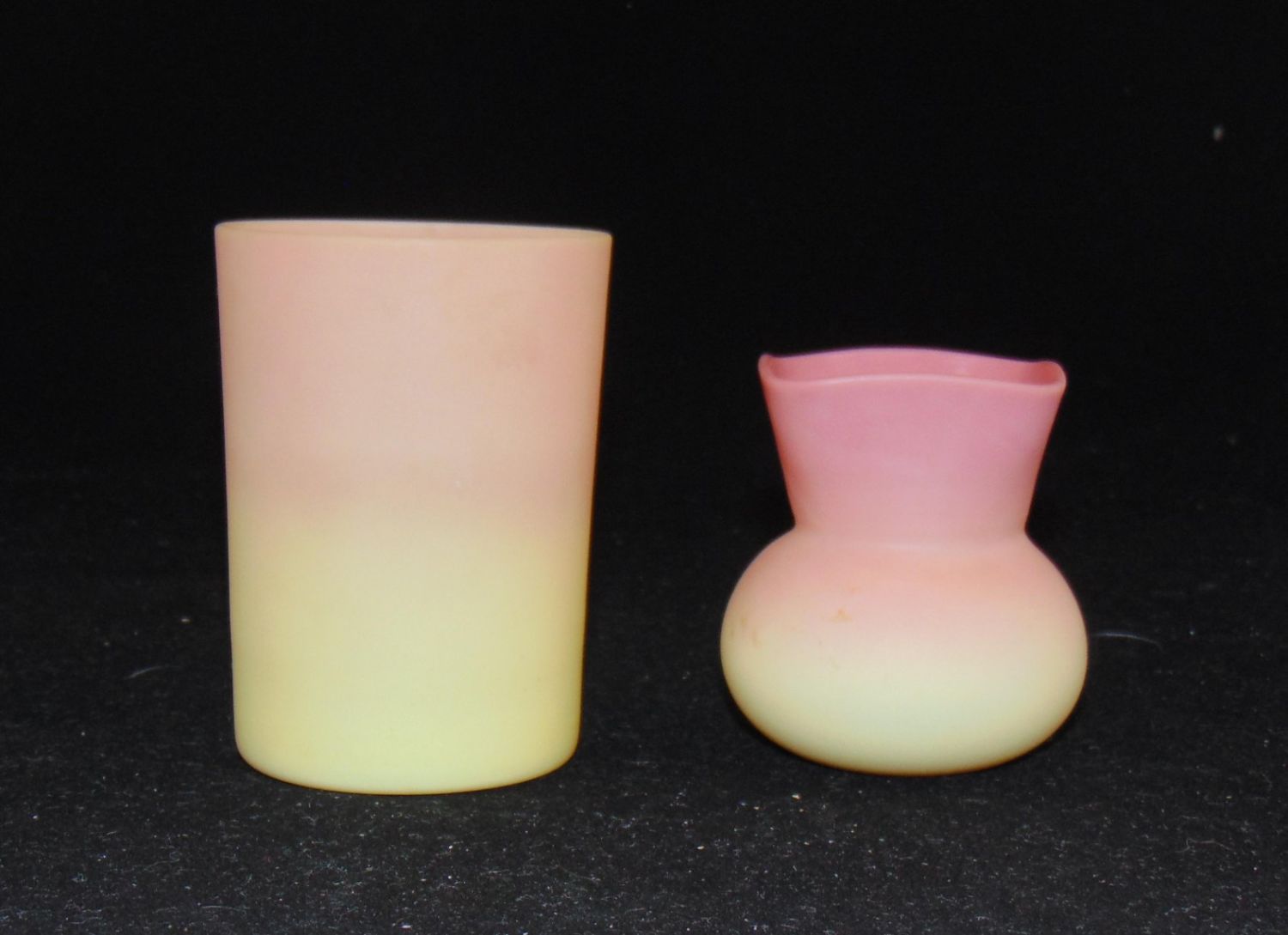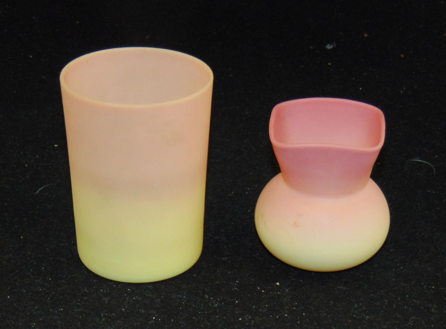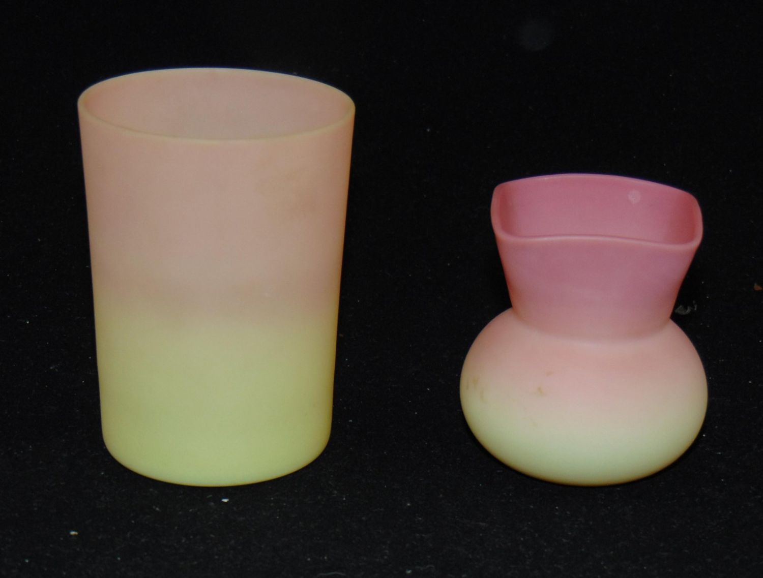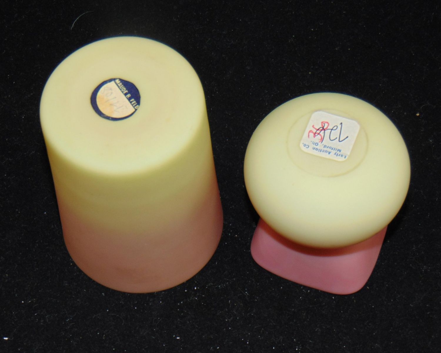 Including a Mt. Washington tumbler together with a Webb toothpick, tallest 3 1/2" ht. PROVENANCE: Early’s Auction, tumbler Maude Feld. Condition: good with no defects found.