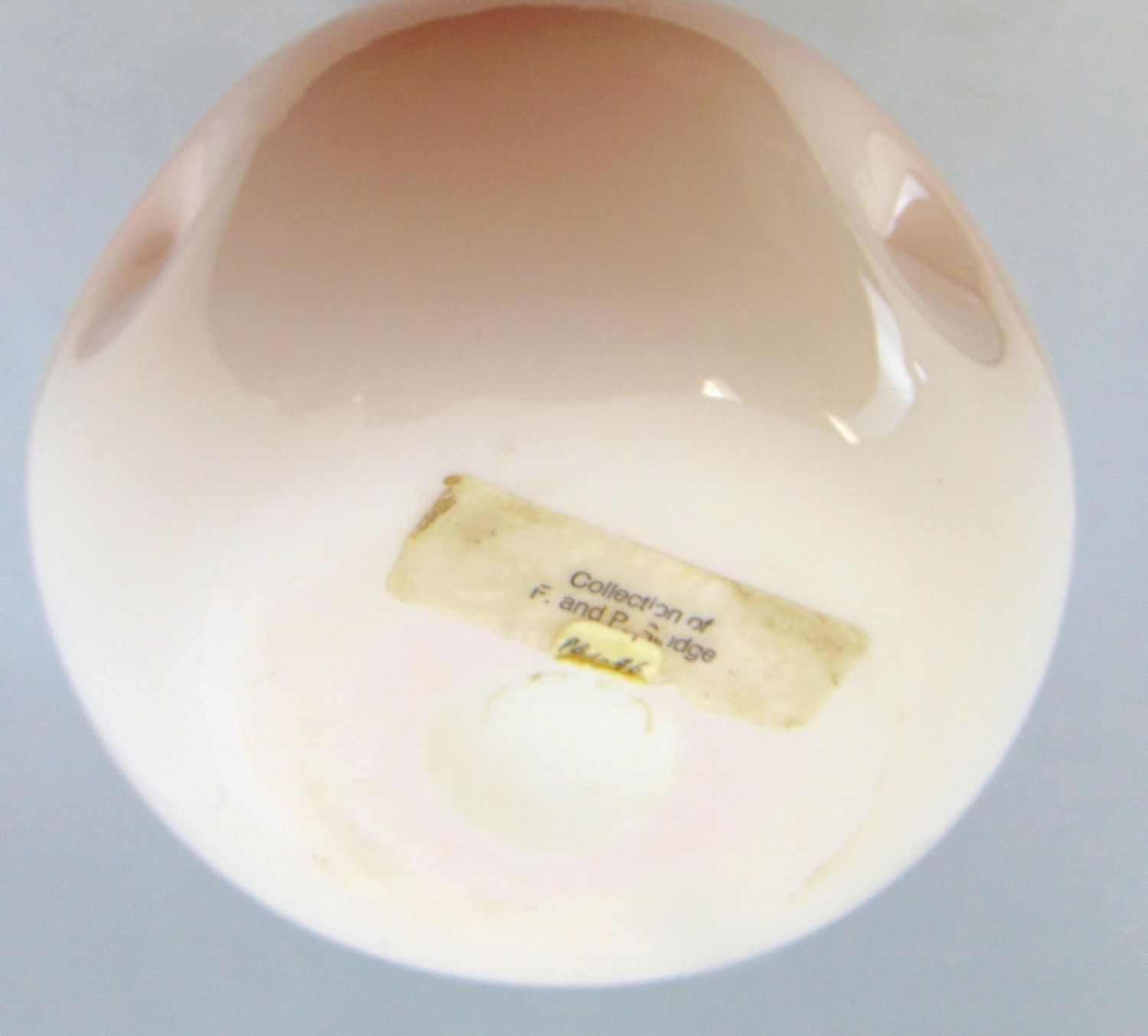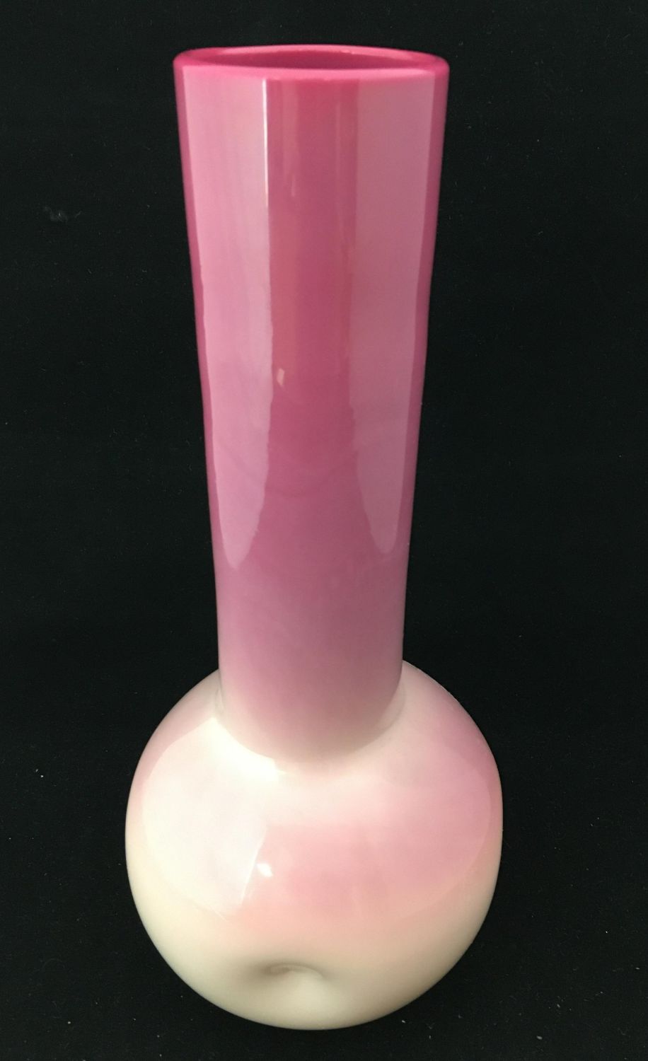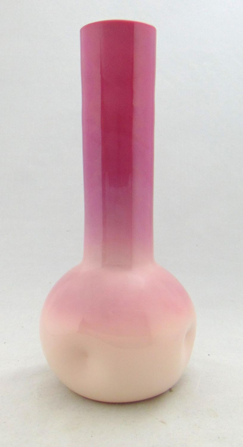 Pinched sided smoke stack form in cream to rose, 13 1/2" ht. PROVENANCE: Fred Rindge collection. Condition: good with no defects found.