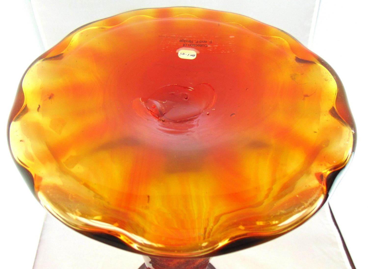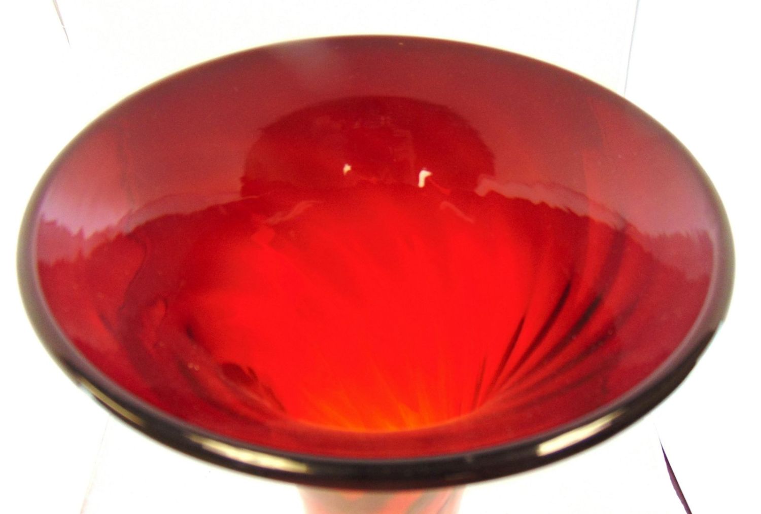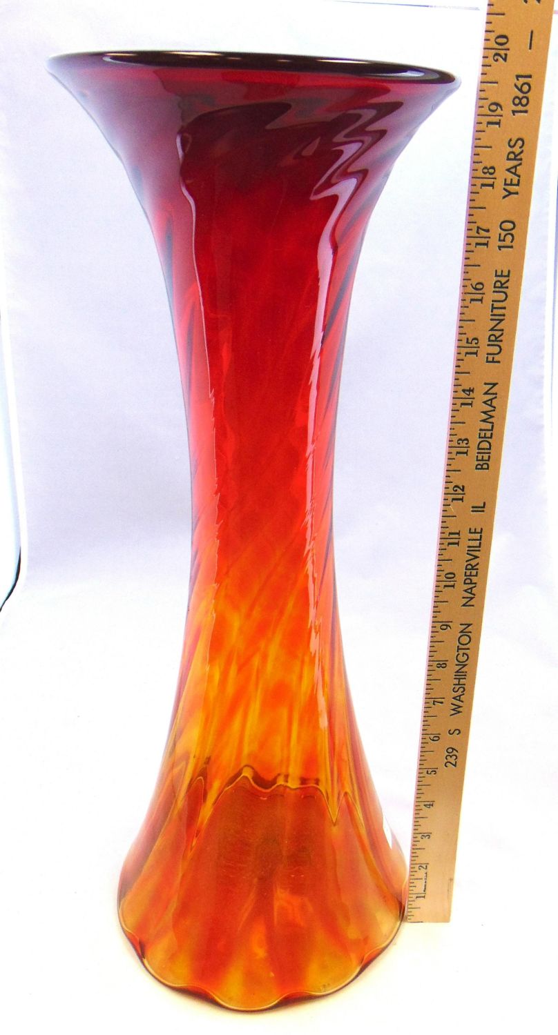 Corset form with a twist in amber glass shading to a deep Crimson, 20" ht. PROVENANCE: Earlys Auction Fred Rindge collection. Condition: good with no defects found.