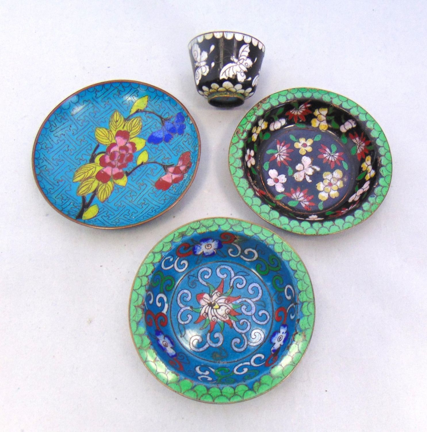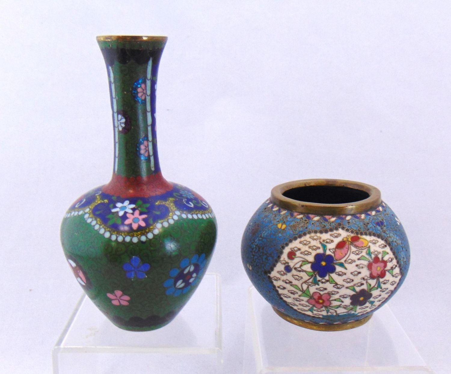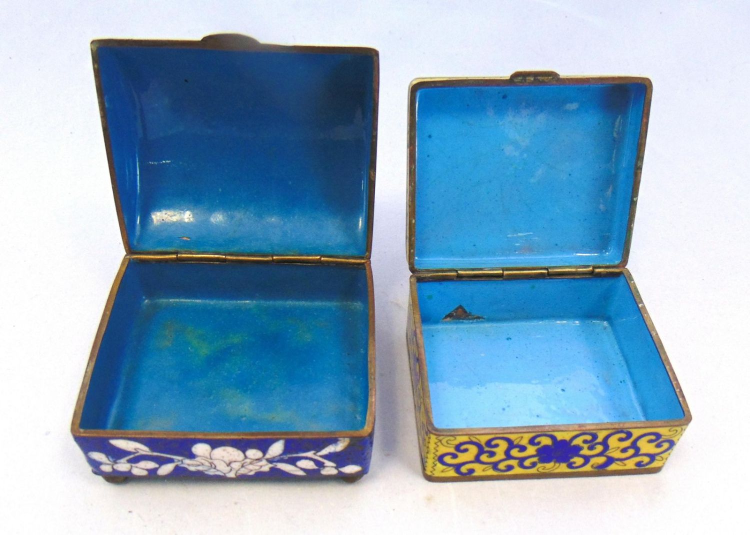 Including two marked China flip lid boxes two vases three dishes and a cordial, tallest 5 1/2" ht. Condition: good, with minor wear.