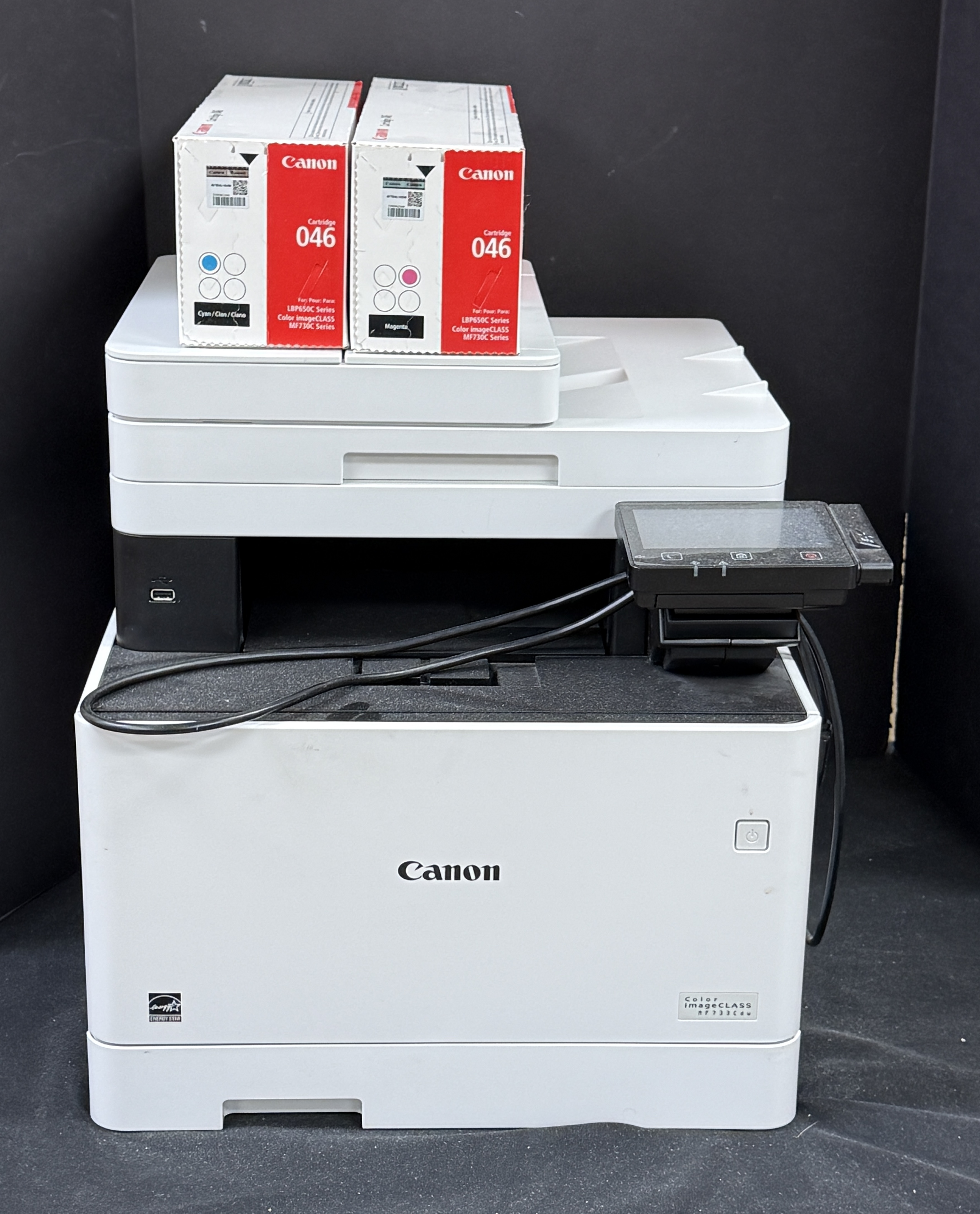 Canon Printer model MF733CDW and two full cartridges a magenta and cyan. PICK UP ONLY CONDITION: working