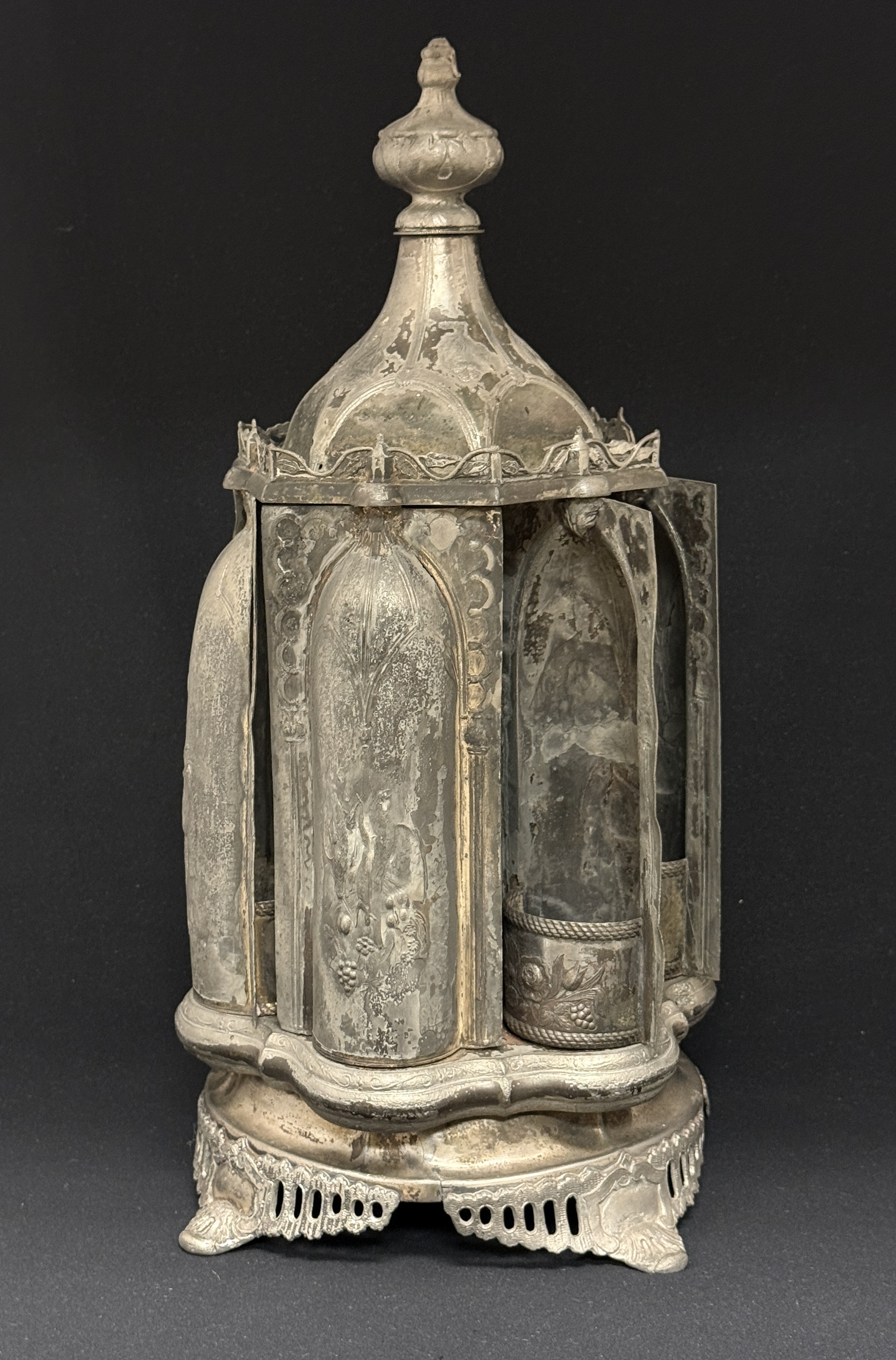 Rosewell Gleason Magic castor caddy, 16″ ht. CONDITION: badly tarnished.