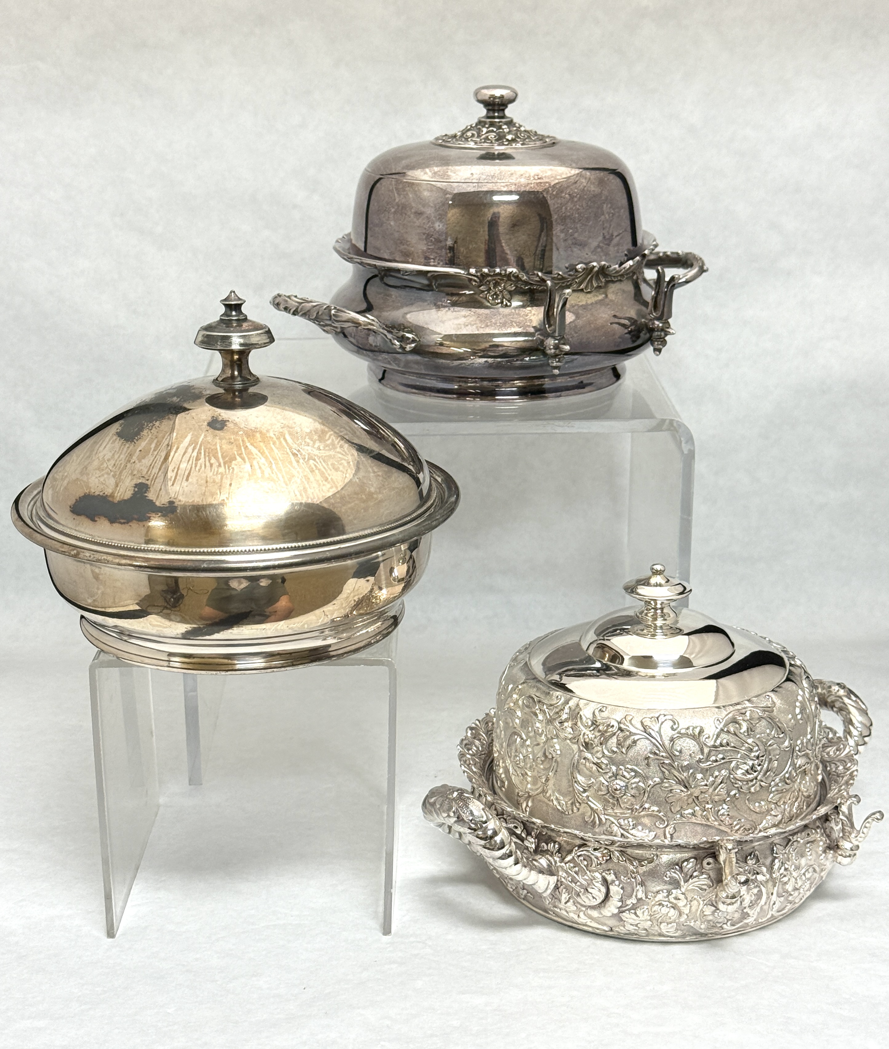 3 Silver Plate Butter Dishes