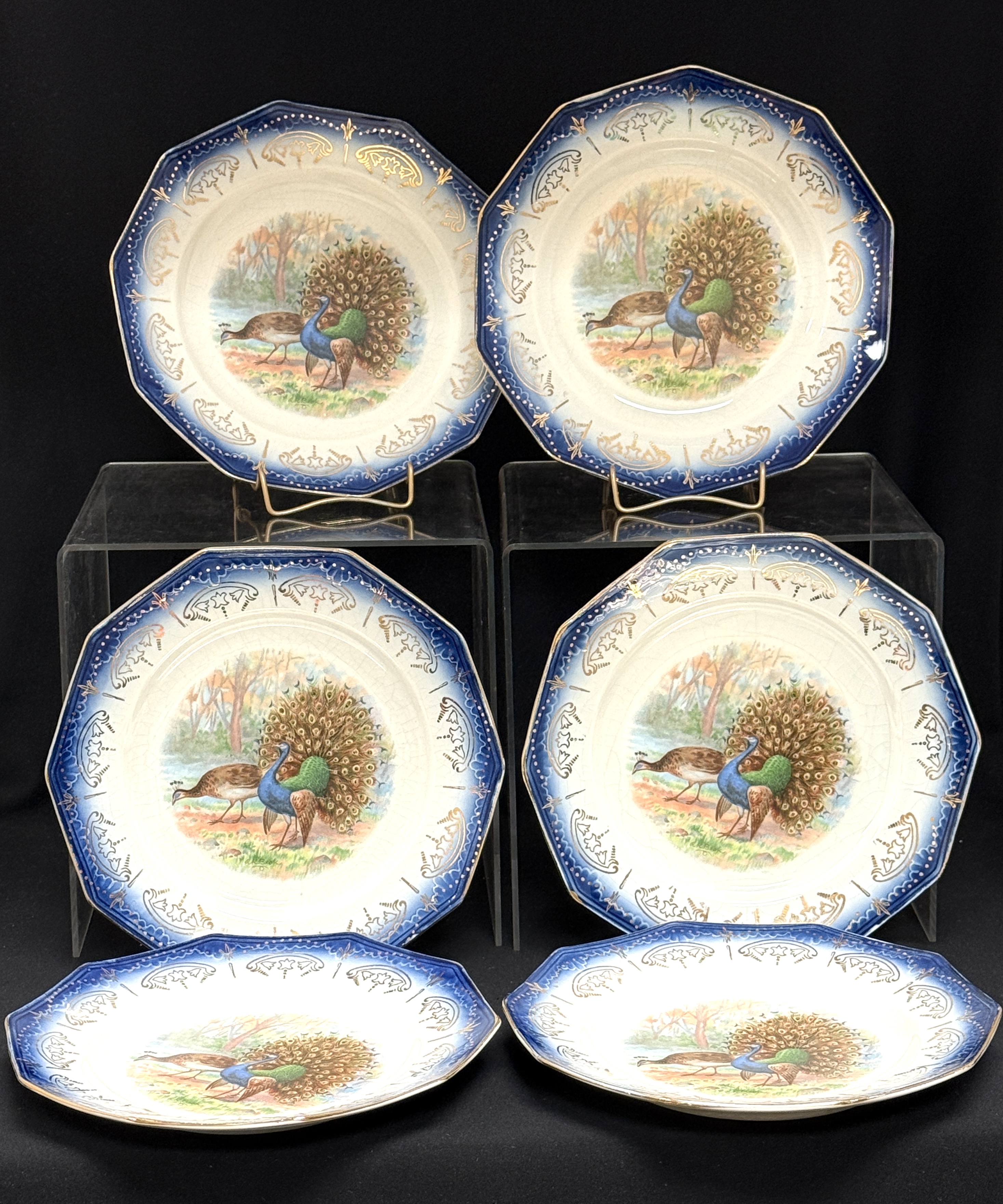 6 Limoges Plates with Peacocks