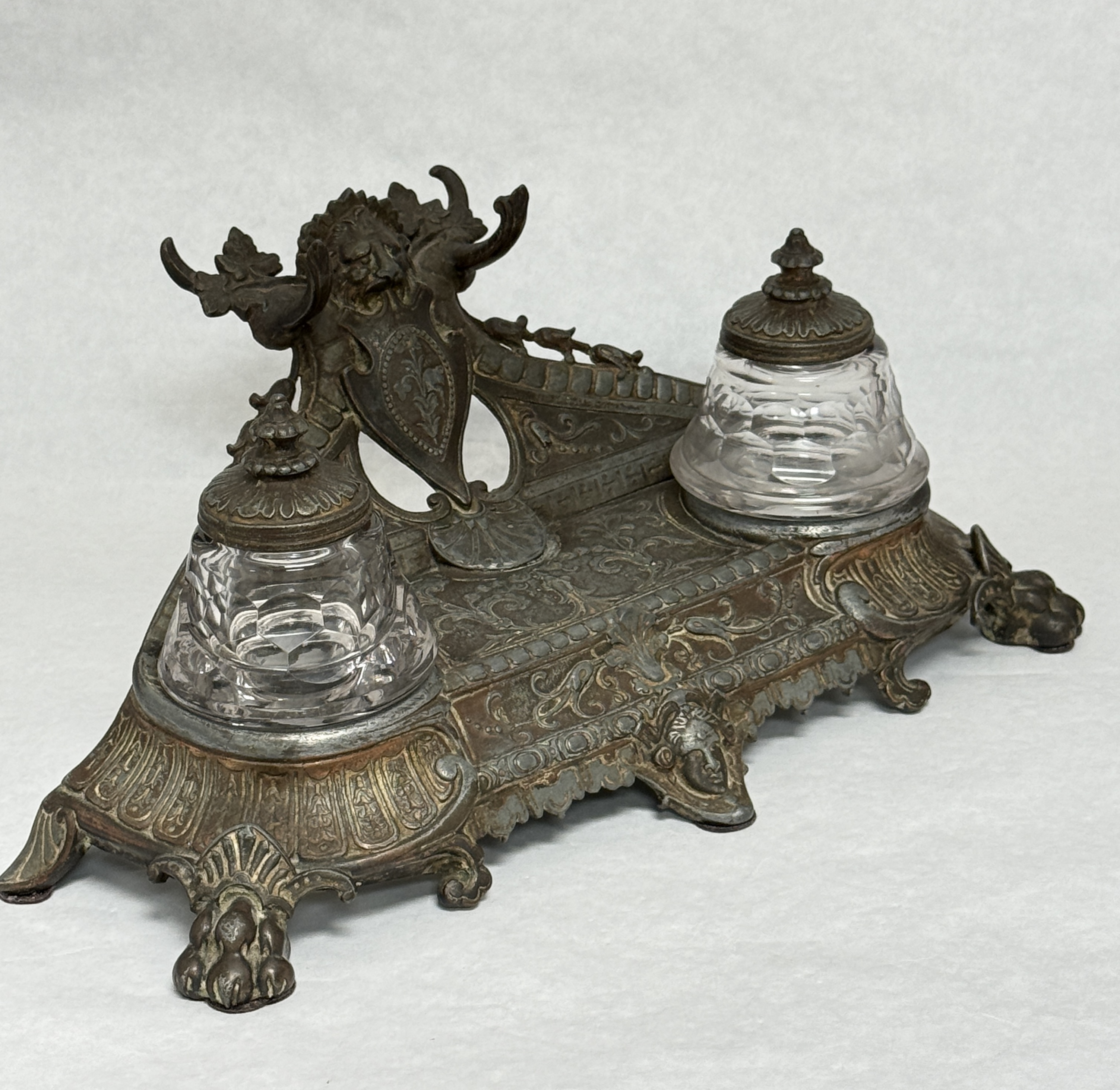 Double Medal and Glass Ink Well